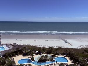 One of the joys of my trip to the beach was hours spent watching instead of doing. From my vantage point, I saw children fan out from their mother, skittering sideways across the sand like baby crabs. I watched ocean foam paint the shore, then disappear. The sea’s color changed daily, sometimes hourly. Hues of gray, green, blue, and aquamarine melded one into the next. Sometimes, waves crashed; other times, the water was as still as a lake.