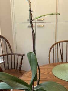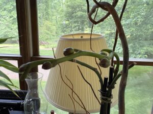 After Jim’s death, I received several beautiful orchid plants. I remember thinking this is the only time I’ll see these gorgeous blooms while these plants are in my care. For over a year, no new blooms appeared after the initial showing. I was proud of the fact that I’d kept the plants alive, but didn’t expect much beyond that. However, when I returned home from my trip last week, to my amazement, my orchids are on the cusp of blooming!